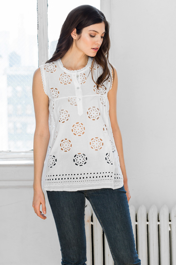 This soft organic cotton shirt features a striking eyelet design and is perfect for the warm weather. The eyelet makes it cool and gives it a unique look. It’s beautiful, comfortable and easy to wear, a real go-to shirt to wear with anything.