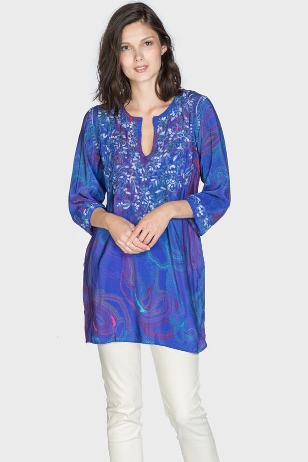 This majestic royal color silk crepe is absolutely stunning. Easy to accessorize for a special occasion or an evening out, or it can be worn casually with jeans