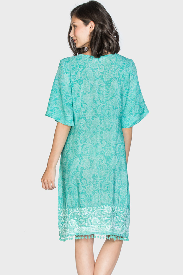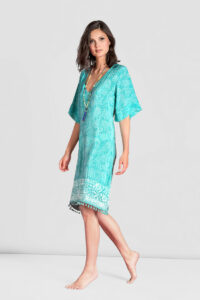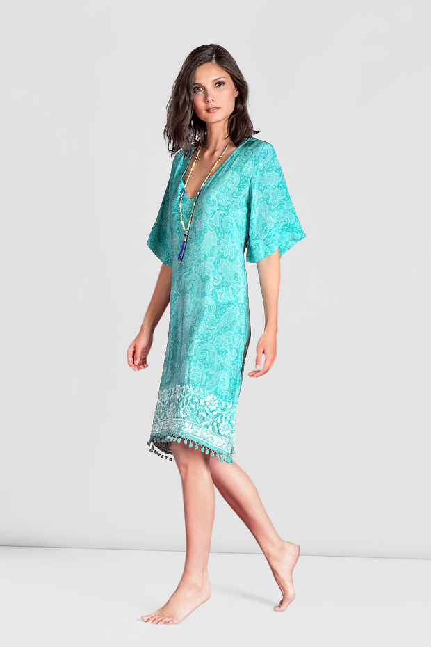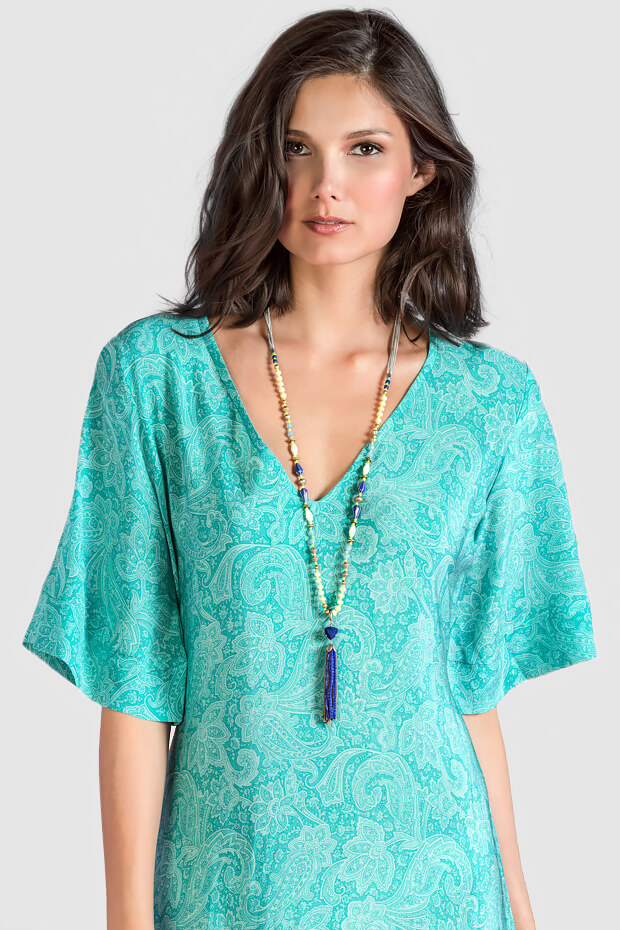 Meet our dream dress. This silk paisley will take you to a party but also takes up no space in your suitcase which makes it perfect for travel. It’s so flattering and the deep embroidered hemline is exceptional, elevating it to another level.
