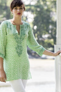 This fresh green Cynthia reminds us that spring in on the way! It’s a cheerful and elegant silk crepe shirt easy to wear for any occasion. it works equally well during the day with flat sandals and with heels and accessories in the evening.