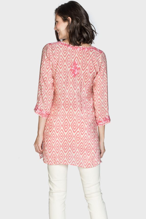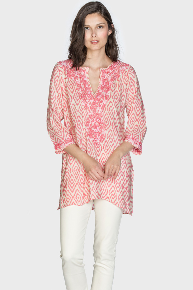 This top is so easy to throw on over any jeans or trousers.  This lovely light weight silk is accentuated by exquisite, delicate hand embroidery.