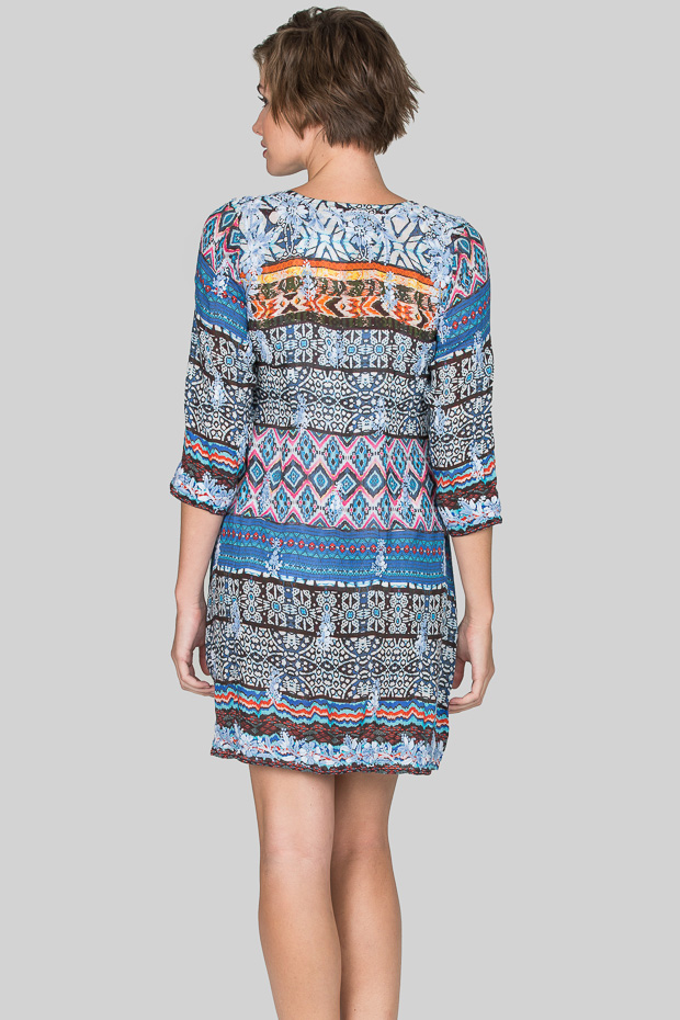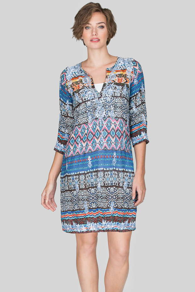 Colorful and fun digital print dress. The print is colorful and fun with its beautiful hand embroidery. The light weight cotton makes it comfortable to wear. It can be worn alone or with trousers.