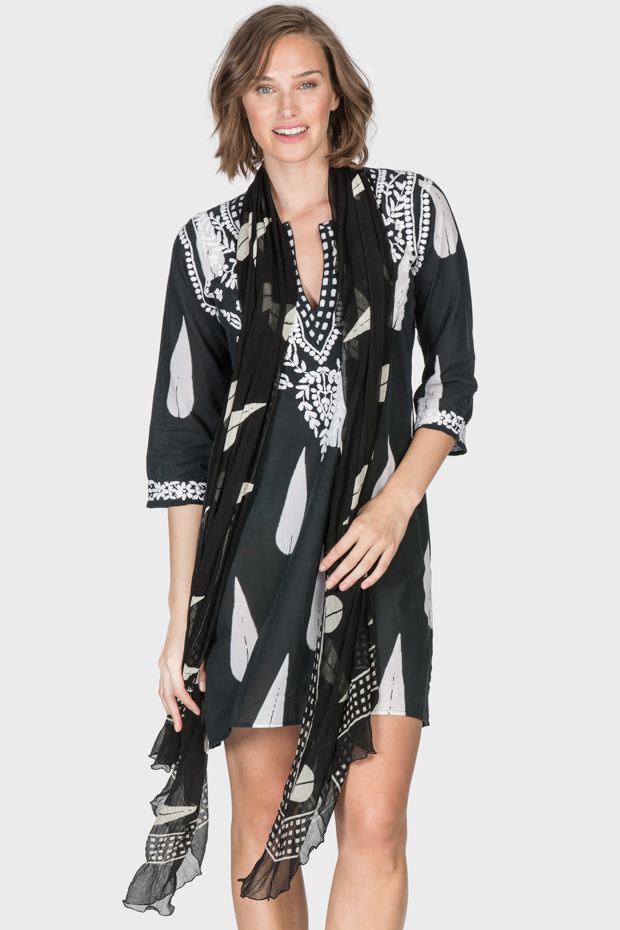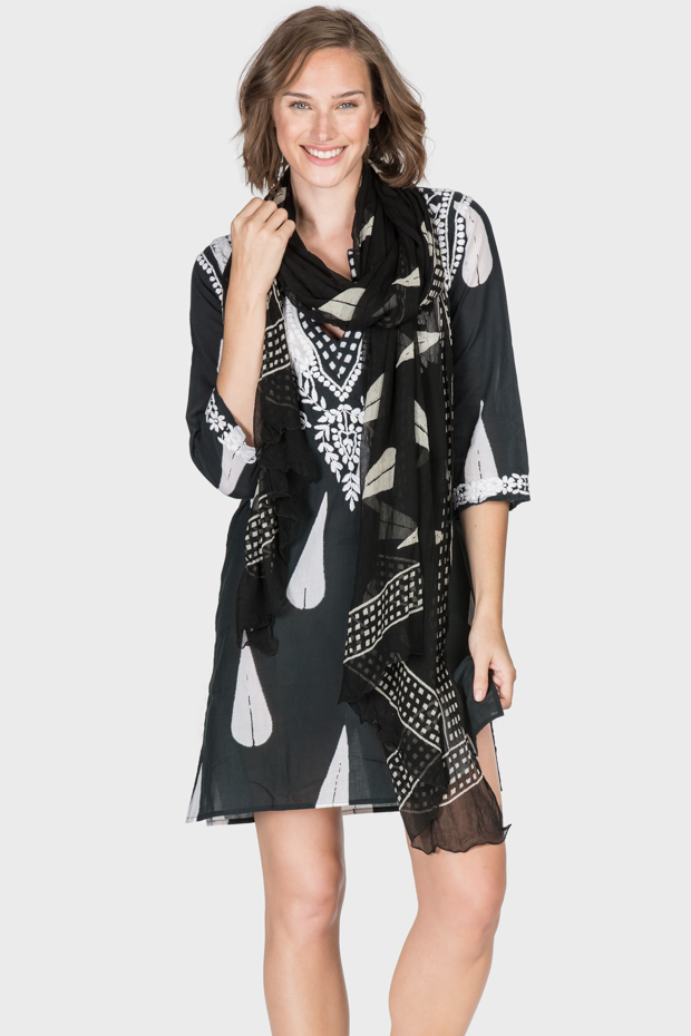 This cotton hand blocked tunic comes in a classic white and black design which is sure to please. It’s versatile and can be worn in multiple ways, as a coverup, with leggings, or with skinny jeans. The Kennedy tunic comes with a scarf which can also be worn multiple ways.