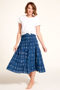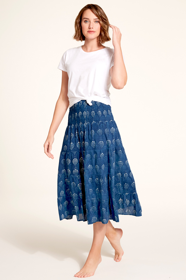 Lauren is a 3 tiered, hand blocked, A- Line skirt with a comfortable elastic waistline. Perfect for 3 season wear.