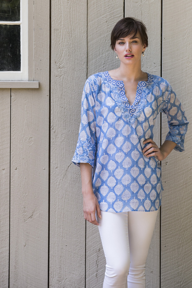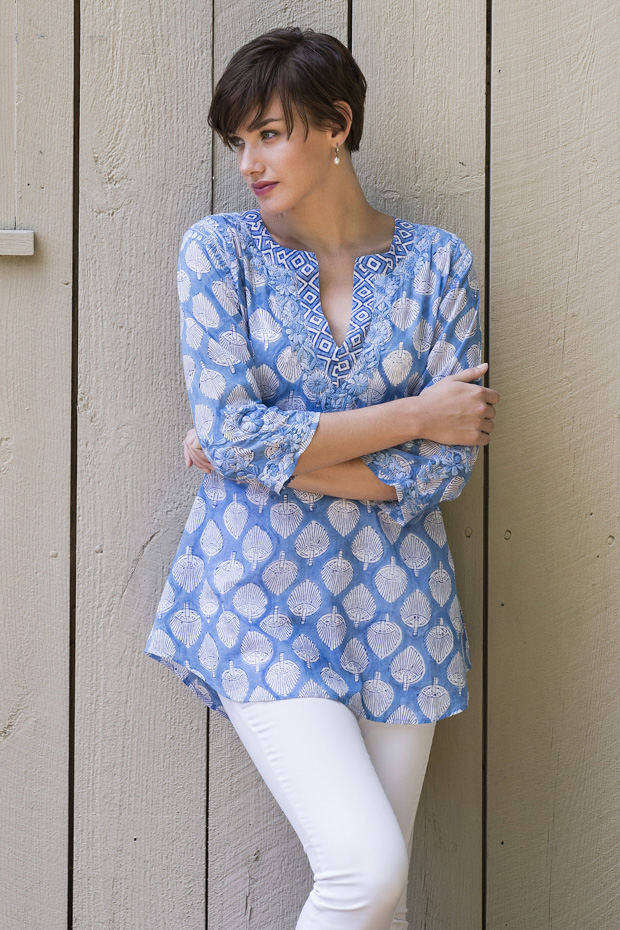 Blue and white is always easy to wear. Mariah is light and airy like the wind. The fit is relaxed and flattering. Wear it with jeans or white trousers and sandals or sneakers. Add some drop earrings in the evening for dinner and you’re ready to go.