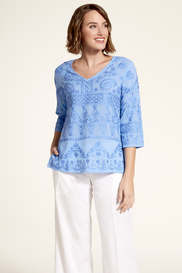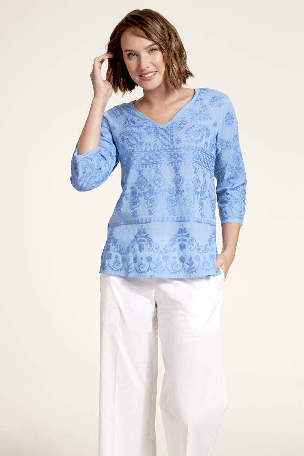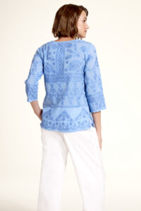 Feel the Aegean sea when wearing this cotton fully embroidered top. Comfortable and easy to wear any day or night. Great with jeans, trousers or shorts.