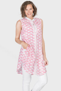 Be comfortable in this versatile cotton shirt .  The button front makes it easy to wear and a cover up over a bathing suit, with white jeans or with a camisole as a topper.
