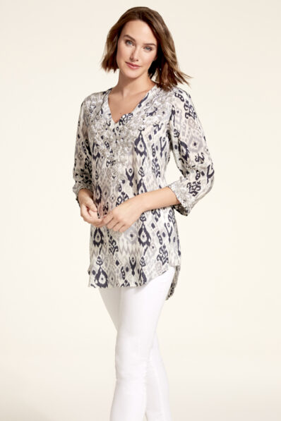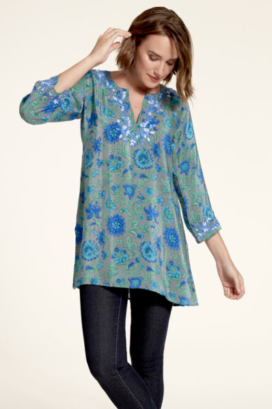 Phoenix Gray/Blue Silk Tunic