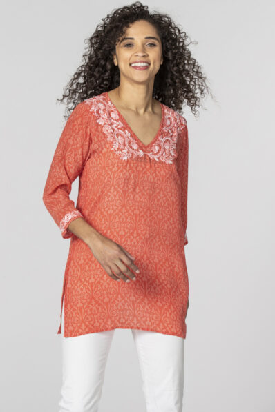 Poppy Coral Silk Tunic